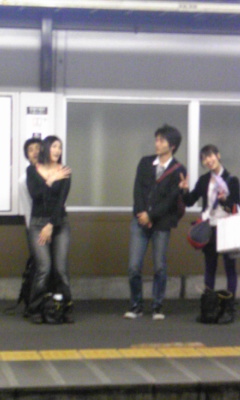 写真は稽古場最寄り駅での役者陣の姿。