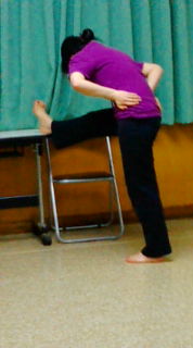 そんなわけで稽古前にストレッチに取り組む堀田嬢の後ろ姿をを遠目から盗撮してみました。