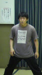 佐々木君はお気に入りのTシャツを稽古着として、色褪せるまで来ています。