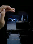 写真はシアターブラッツの客席後ろ、音響・照明が控えるブースから舞台を眺めたかんじ。